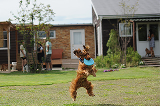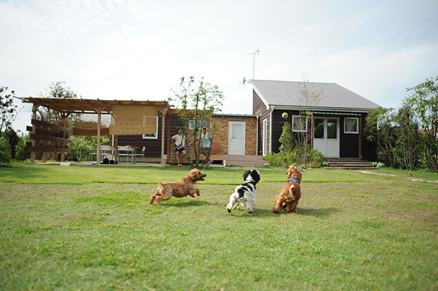 「うみ」は2013年夏九十九里海岸沿いにオープンしたドッグコテージです。 大きなワンちゃんでも十分な広さのお庭は専用のドッグラン、施設内は建物内を含めノーリードでOKです。海の音は愛犬との宿泊施設 一棟の居住スペースとドッグラン兼用のガーデンがそのままプライベートな空間になっています。 敷地は約200坪、建物の外壁は天然素材の木と石を使用し、キッチンや洗面台も既製品ではなくタイルで手作りしました。日常から少し離れ、自然の中でワンちゃんと自由な時間をお過ごしください。