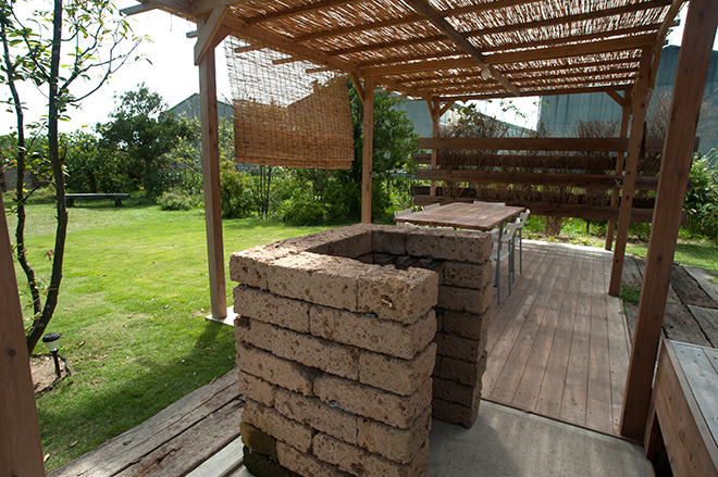 | 屋外にもBBQができるパーゴラが付いたウッドデッキのLDをご用意しました。BBQの機材(コンロ、網、トングなど)は備えてあります。 炭、着火剤はご用意いただくか有料にてご用意が可能です。 九十九里産のハマグリや新鮮野菜など地元の食材で是非BBQをお楽しみください。 |